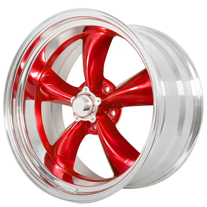14″ American Racing Wheels Vintage VN515 Classic Torq Thrust II Custom Red Face with Polished Rims