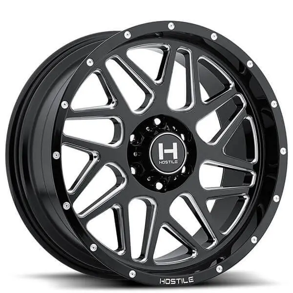 22″ Hostile Wheels H108 Sprocket Gloss Black with Milled Accents Off-Road Rims