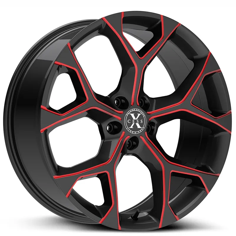 22″ Xcess Wheels X05 5 Flake Gloss Black with Candy Red Milled Rims