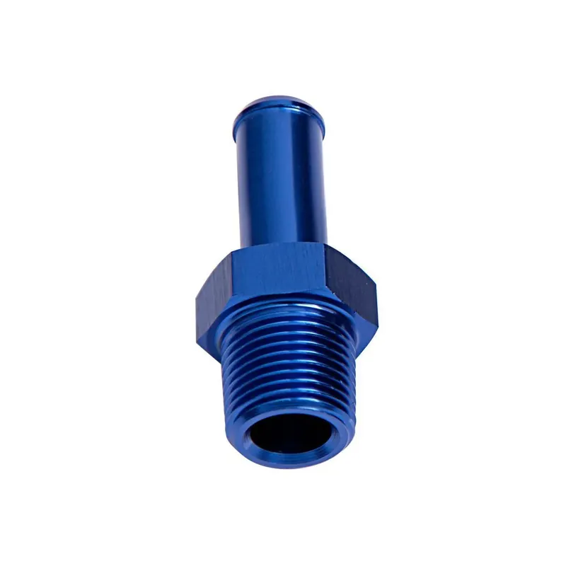 These handy NPT to straight hose barb fittings are designed to allow easy fuel line installation on electric fuel pumps and regulators when using rubber fuel line. They have a male NPT fitting on one end and a barbed fitting on the other end and they’re available in different sizes to fit your needs.These barb sizes are designed to work with Aeroflow 400 series and 500 series Push Lock Rubber hose. Available in various sizes with Blue, Black and Silver finishes.