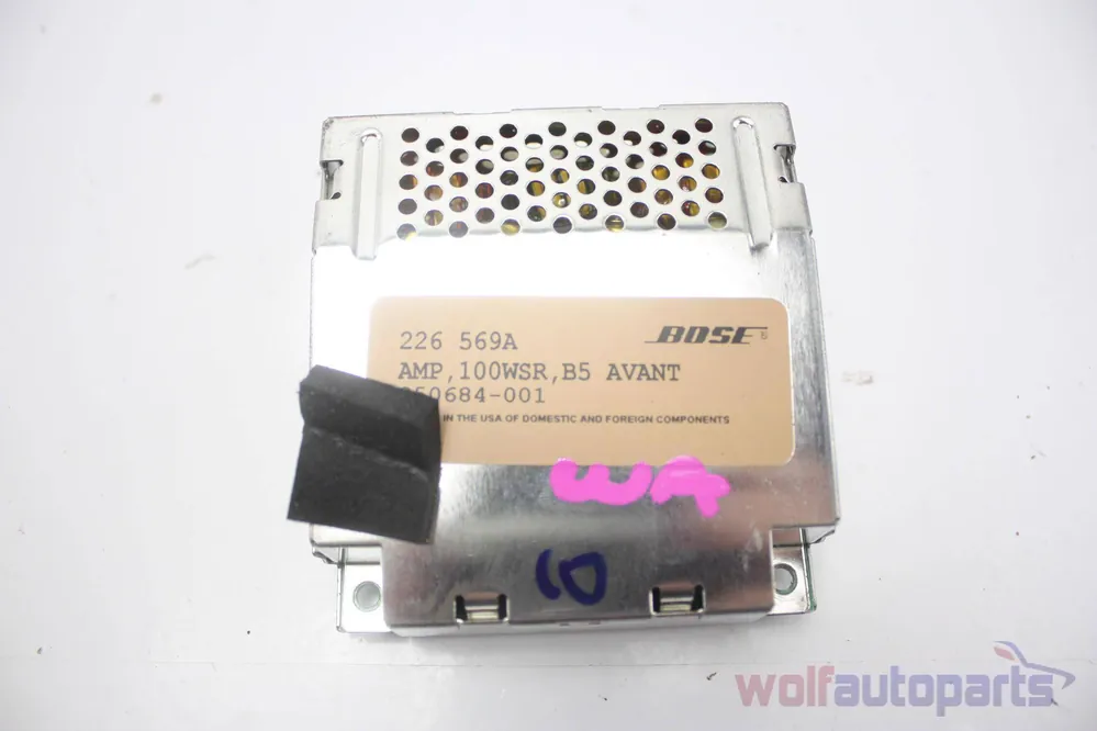 Enhance your Audi A4, A4 Quattro, or S4 with this genuine AVANT BOSE AMPLIFIER (OEM Part Number: 8D9035381B). Sourced from salvaged vehicles, this factory-original part restores audio quality by delivering crisp, powerful sound through your vehicle’s BOSE sound system. This amp replaces worn-out or non-functioning amplifiers, resolving issues such as distorted sound or complete audio loss. Compatible with Audi models from 1998 to 2002, including the A4 and S4, it ensures a seamless fit and optimal performance. Trust in authentic OEM craftsmanship to bring your vehicle’s stereo system back to life. Perfect for Audi enthusiasts seeking reliable replacements.