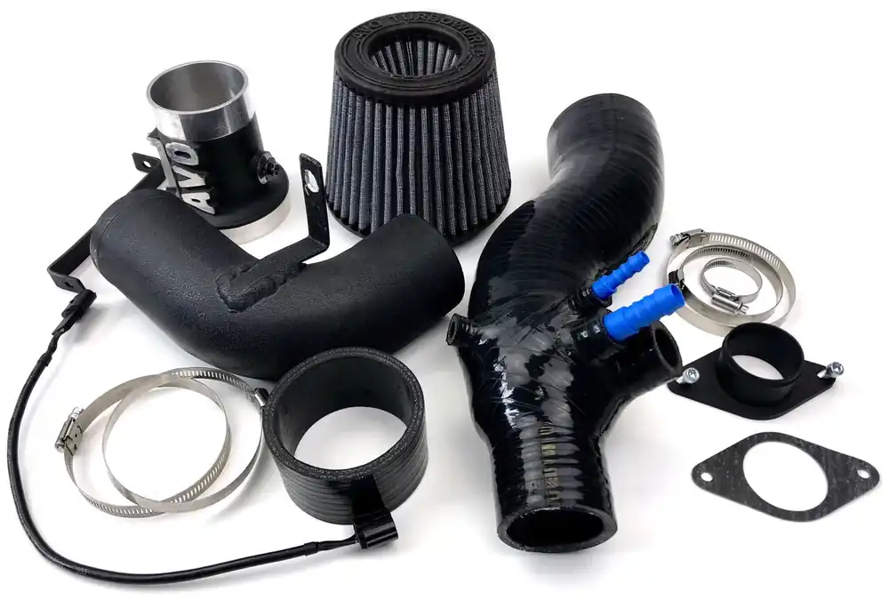 The AVO Power Intake system includes all the mounting brackets and 2 silicone hoses with a 45 degree connecting pipe. It is truly simple to install on your own and is a good, cheap power-adder that works well with stock or modified setups. If you are seeking maximum power, this is the way to increase air flow.