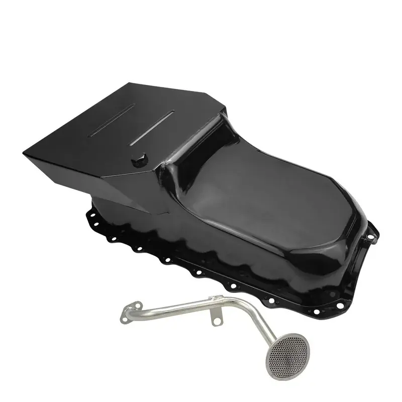 RTS super stroker oil pans are available for most popular V8 engines and are the perfect choice for street or track-driven high performance vehicles with large cubic inch engines. They begin as a stamped steel pan which is then customised with specially designed oil capacity wings. These wings allow extra oil capacity of 6.5 litres and helps to maintain more consistent oil temperatures for reliability without affecting ground clearance. Available in black and include windage trays, crank scrapers and a magnetic drain plug.
