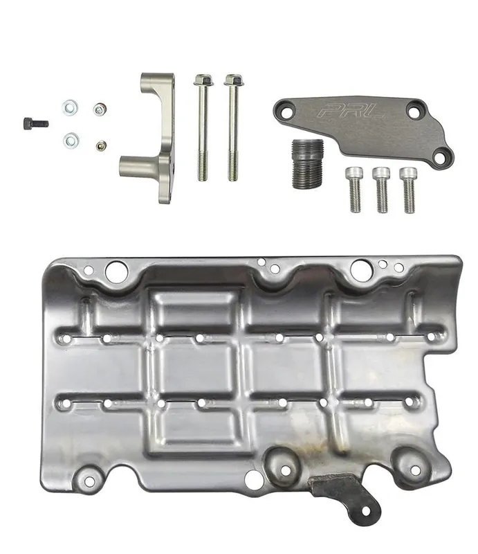 The comprehensive kit includes a modified windage tray, two windage tray spacers, two NPT pipe plugs, a mounting bolt, PRL Motorsports oil pump mount with bolts, and an oil filter block-off plate. These components ensure a clean, straightforward installation without guesswork or rigging. Ideal for enthusiasts upgrading high-output K24Z engines in 9th Gen Civic Si and TSX models, this kit offers a cost-effective solution to enhance engine durability and maximize performance.