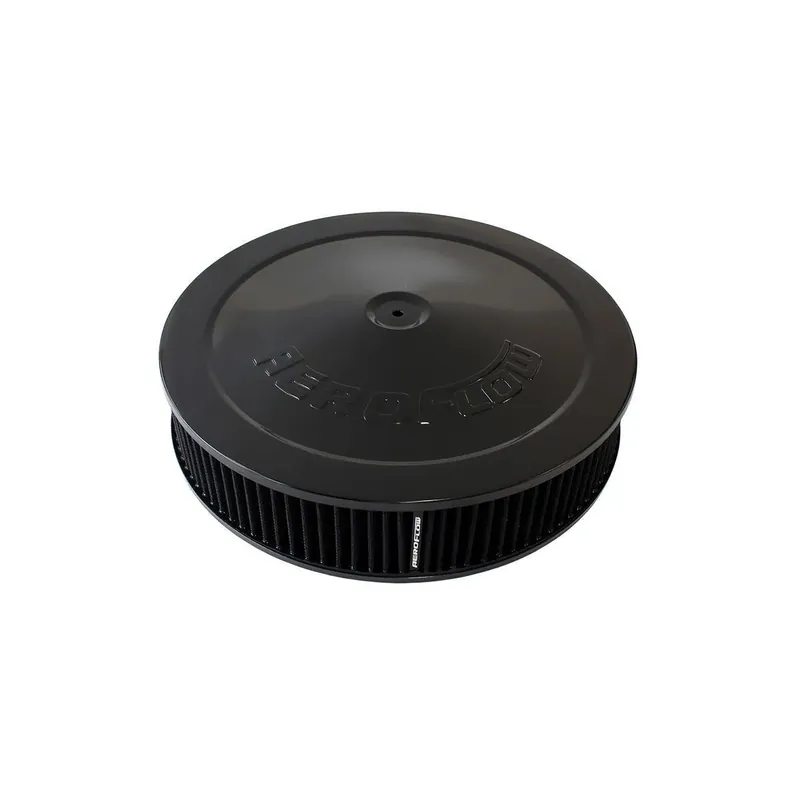 Stand out from the crowd with a magnificent looking Aeroflow air cleaner. These air cleaners are stamped from high quality steel. Available in many different great finishes and styles for that custom look you are after. Chrome-plated or black finish with reusable/washable or paper elements. Aeroflow air filter assemblies work with all popular standard 4150 (5-1/8″” / 130mm) carburettors and 4500 Dominator (7-5/16″” /186mm) carburettors. The 14″” (355.60mm) air filter assemblies come with a drop base that sits 1-1/8″” (28mm) below the carburettor.
