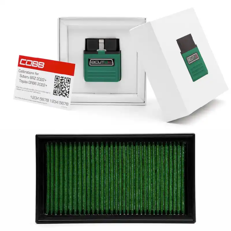 The COBB Stage 1 Power Package includes the COBB Flash Kit Pro & Calibrations and the High Flow Filter for the 2022+ Subaru BRZ / Toyota GR86
