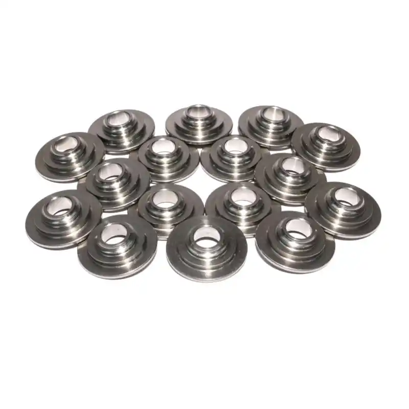 no longer will you be preoccupied with splitting a retainer and tearing up an engine when turning 10,000 RPM. COMP Cams titanium retainers are made from the finest 6AL4V alloy for maximum stiffness and minimal warpage. The 6AL4V alloy is heat-treated and processed to a stringent tolerance that makes it so strong that it is even used in the aircraft industry. Other manufacturers purchase titanium from Metal brokers and produce “cheap” retainers, but COMP Cams titanium retainers will not deform. From a standing idle to the most extreme RPM, our titanium retainers perform flawlessly and without compromise.