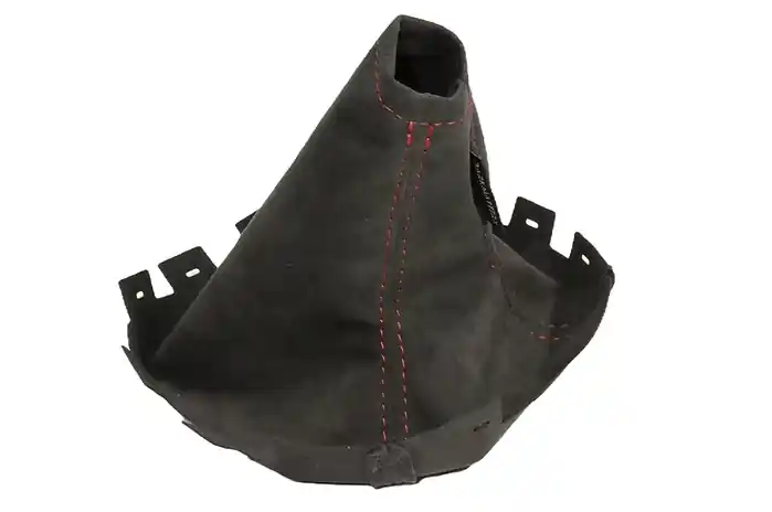 Upgrade your 2008-2014 Subaru WRX STI interior with the DARKMATTERX Alcantara Shift Boot in charcoal black with red stitching. This premium shift boot enhances your driving experience by combining luxury and performance with its ultra-soft, suede-like Italian Alcantara material. Designed for enthusiasts who value both style and function, it offers a refined upgrade to your gear shift area.