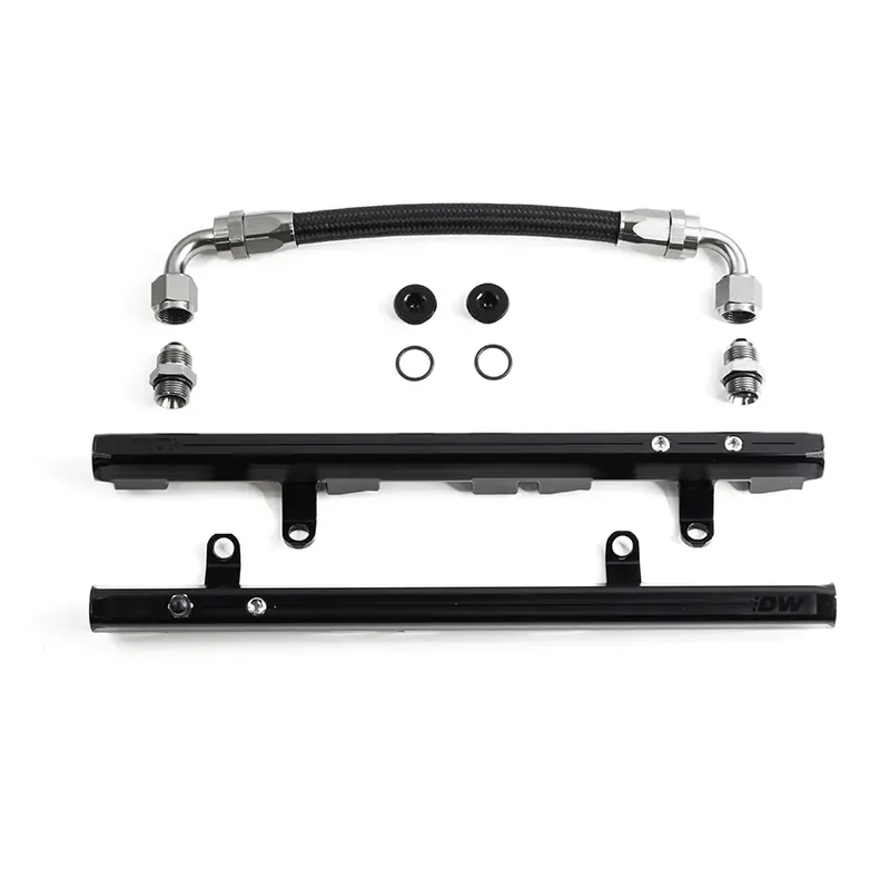Quality – DW fuel rails are CNC’d from billet T6061 aluminum and hard anodized in a black finish. The new DW rails were designed with integrated CNC brackets; less expensive bolt-on brackets save money but lack stiffness and precision. In addition, DW engineers invested significant design time removing excess material to shave weight and create a sleek signature look resulting in a rail that looks as good as it performs.