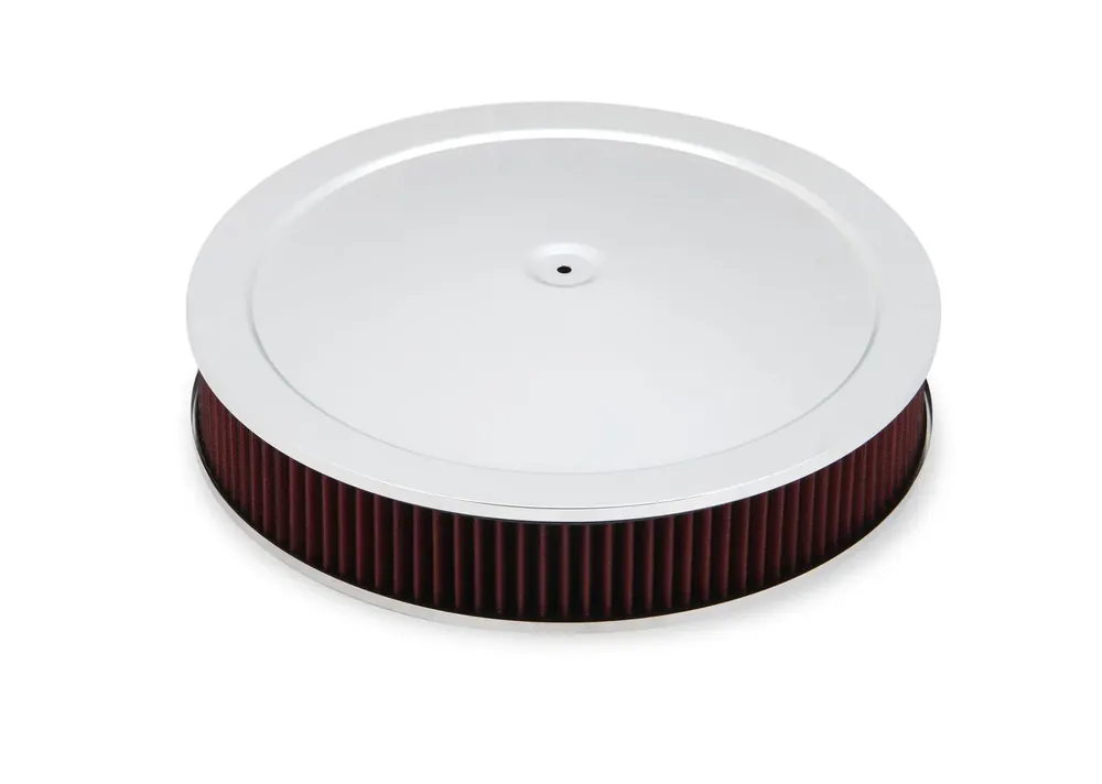 Holley is proud to offer a breath of fresh air with our new 16″ drop-base 4500 air cleaner assemblies and filters. Available in chrome or EDP black. The assemblies are available with a red washable gauze element or a white pleated paper element to offer the look you have in mind. The tops are so large and smooth we decided to leave them plain for a nice stealth look, or to use as a canvas for creating your own look. They feature a 15/16″ drop-base so hood clearance is gained above without creating clearance issues below.