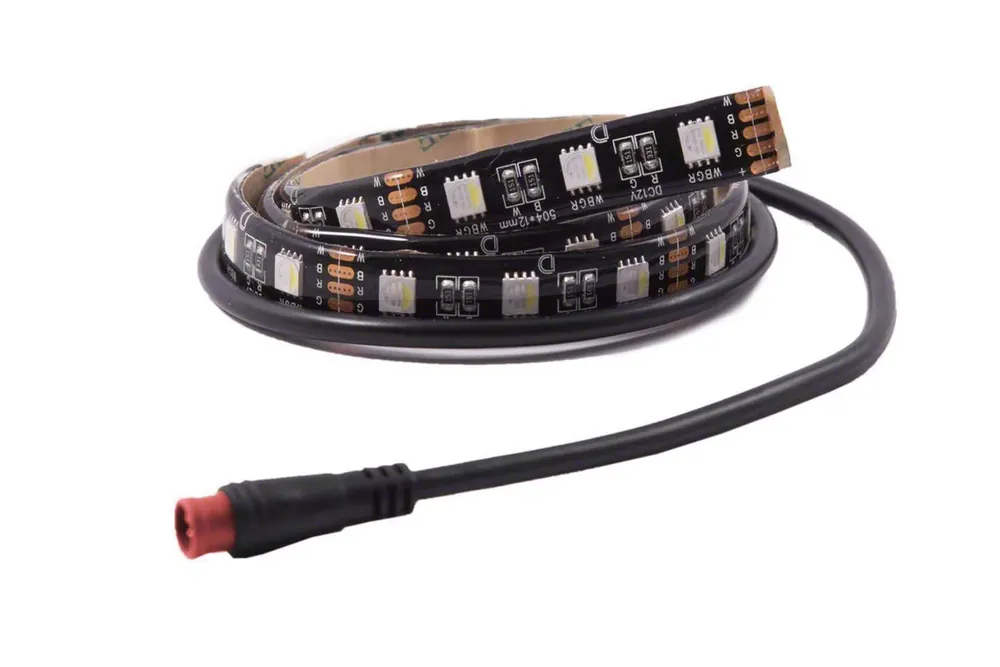 Construction and Appearance. This LED kit is constructed with high-density LEDs that ensure longevity and consistent performance. It features a highly flexible and waterproof design, suitable for various weather conditions, with an IP67 weatherproof rating. The connectors are barrel-style M8, robust and secure.
