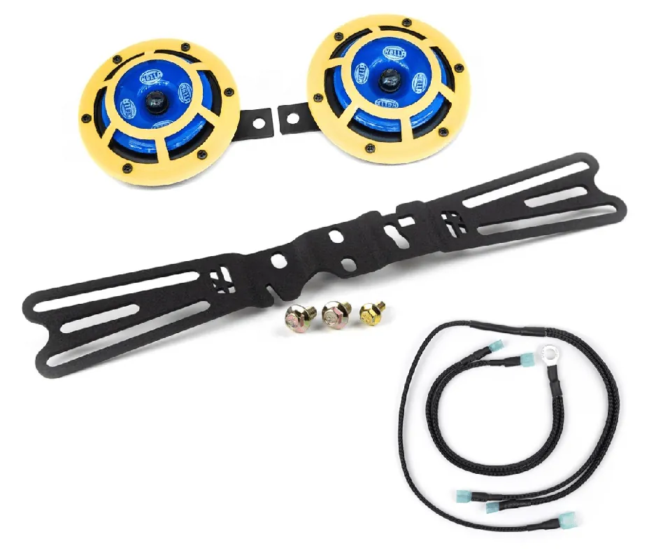 Hella Sharptones are the horns to have for getting the attention of other vehicles on the road. Hella uses a combination of low tone (330Hz) and high tone (415hZ) disk-type horns to project a powerful 115dB sound that is designed for highway use.