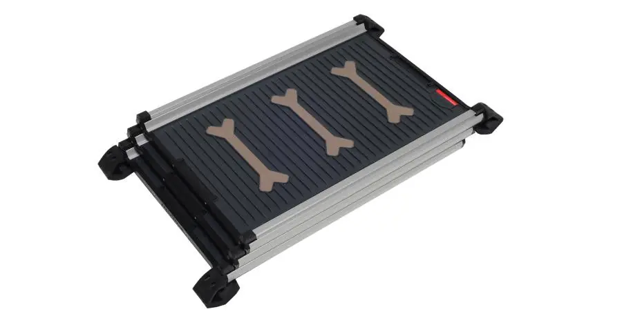 Crafted from durable aluminum and plastic, the ramp supports pets up to 220 lbs and features a high-grip ridged surface for secure footing in all weather conditions. Rubberized feet prevent slipping and shifting, while the lightweight telescoping design allows for easy extension and compact storage in your cargo area when not in use.