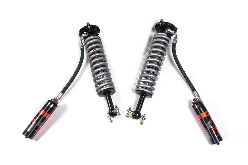 Coil-over shocks provide suspension damping and suspend the weight of the vehicle. The integrated coil spring can be adjusted for preload and ride height and come pre-set to level your vehicle right out of the box. The DSC adjuster adds remarkable versatility and precise tuning with a simple twist of either two adjuster knobs, offering 10 separate low-speed and 12 high-speed compression levels, with a black anodized aluminum reservoir to increase cooling efficiency.