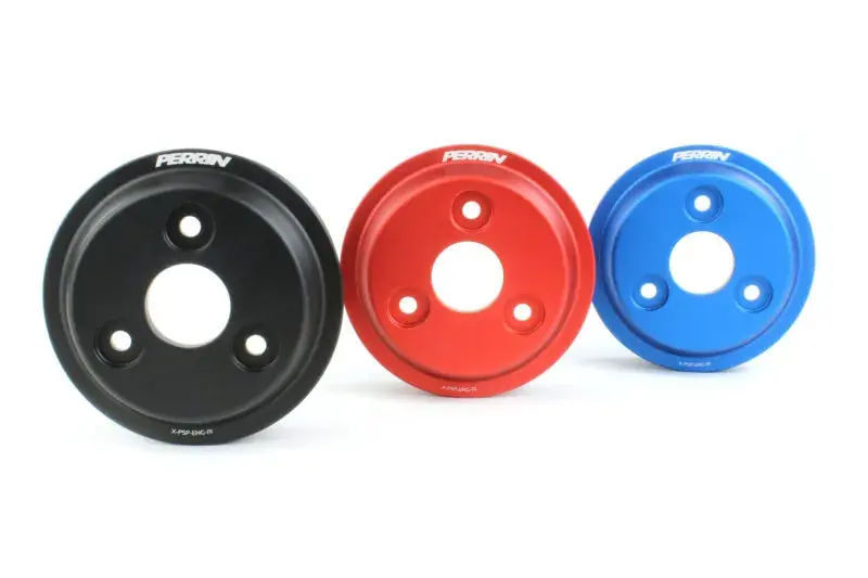 The PERRIN Lightweight Water Pump Pulley is machined from 6061T6 billet aluminum. Featuring an anodized black, blue, or red, finish and laser etched for increased belt life and a precision fit.