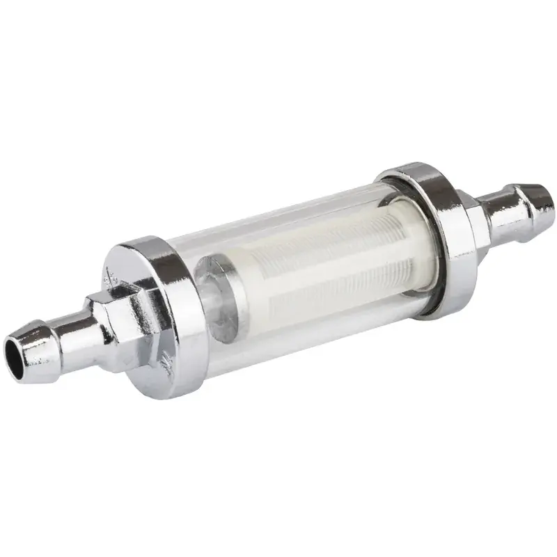 Chrome steel with glass inspection tube and replaceable element. Not for use with fuel injection systems.
