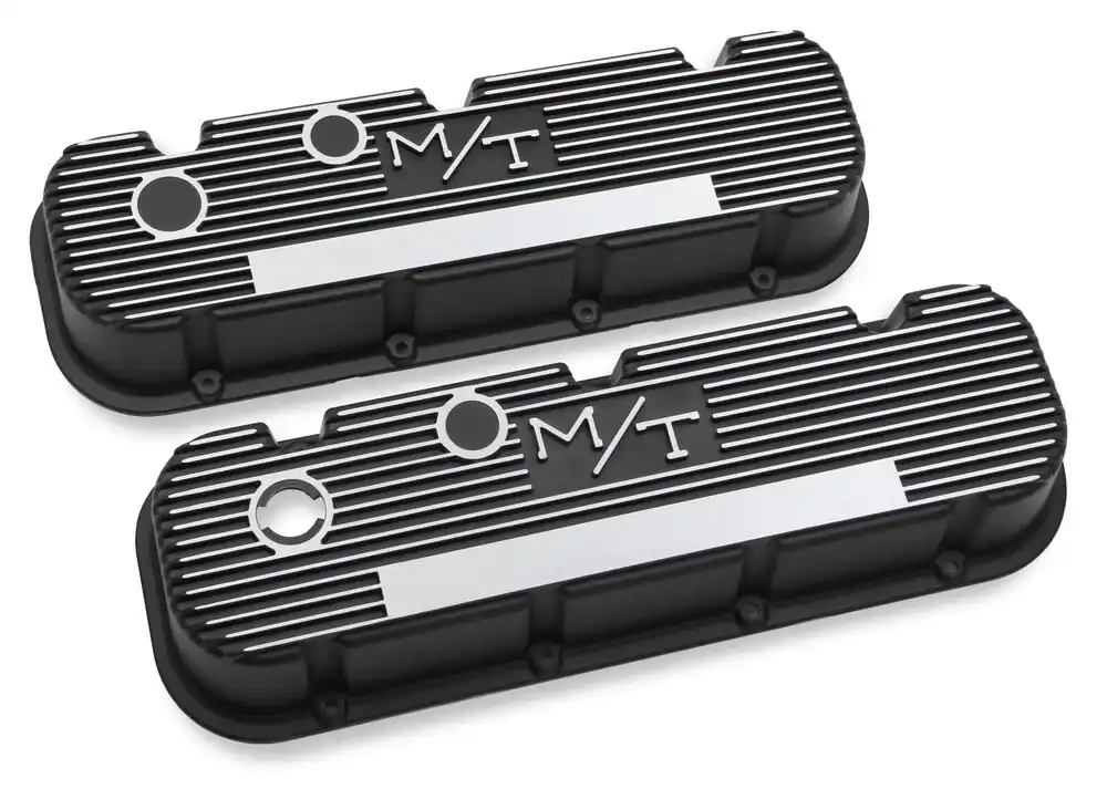 Holley M/T Valve Covers – Vintage Style – Finned – BBC – Satin Black Chevrolet Big Block – Cast Aluminum Last Chance