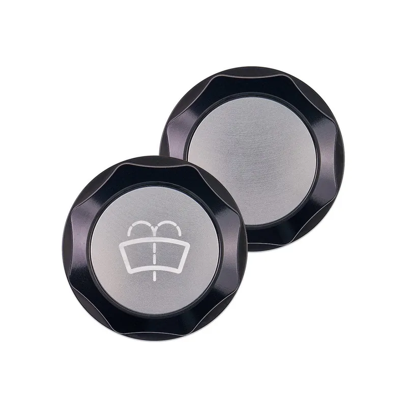 The IAG Revolve Washer Fluid Cap stands out with a vibrant anodized aluminum insert in the center. The insert is laser-etched to reveal a universal washer fluid symbol, but can be flipped to show the solid color. The inserts are easy to swap in seconds, thanks to the accessible design inside the cap—just use a small tool to pop the insert out and choose your preferred side.
