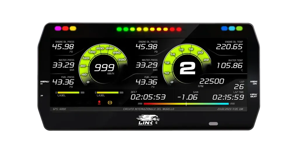 The dash can be personalised and configured using Link’s PCLink and Aim Technologies Race Studio 3 software (Both free downloads)