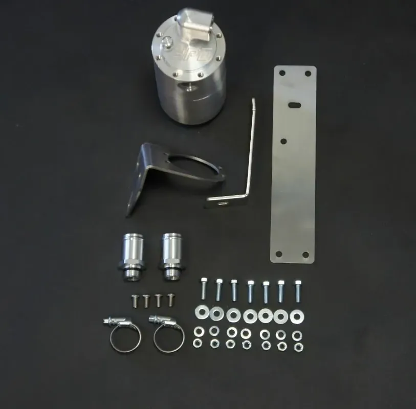 HPD’s oil catch can / oil separators come in universal and complete kits with all required stainless steel laser cut bracketry, correct size hose tail fitting, washable internal stainless mesh filters, cut to size oil resistant hosing, bolts, nuts, washer, spring clamps and installation instructions for each vehicle.