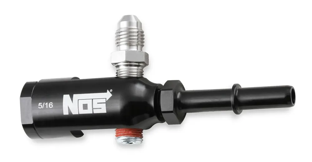 Eliminates Cutting, Drilling & Modifications When Installing Nitrous on a Late model Fuel Injected Vehicle.Simply disconnect the OE Fuel Hose and Install this Adapter Between the OE Fuel Rail and Fuel Hose.The (3) 1/8″ NPT Ports Can Be Configured in Any Direction For Best Fit In Your Application.The -4 AN Adapter is Used to Feed Fuel to Your Nitrous Plate.
