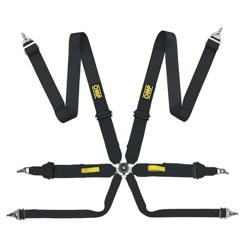 OMP Racing Tecnica 6 Point Harness 3″ / 2″ Snap In / Carabiner Black Trending