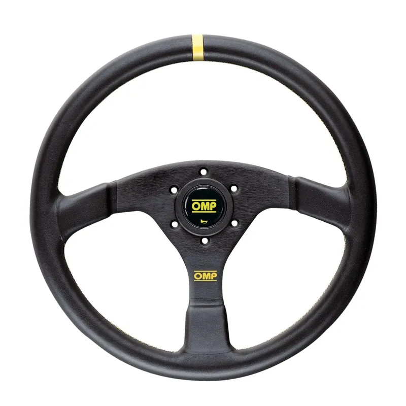OMP Racing Velocita’ 350mm Steering Wheel Leather w/ Yellow Stitching and Yellow Centering Stripe Secure Checkout