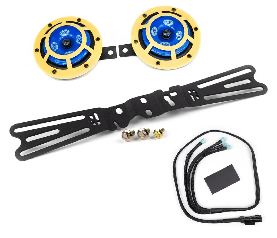 Hella Sharptones are the horns to have for getting the attention of other vehicles on the road. Hella uses a combination of low tone (330Hz) and high tone (415hZ) disk-type horns to project a powerful 115dB sound that is designed for highway use.