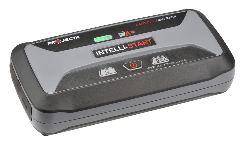 The Projecta Intelli-Start is powered by a lithium iron phosphate battery. It is capable of starting most passenger vehicles and 4WDs with petrol engines up to 7L or diesel engines up to 4.5L.Rapid recharge technology enables it to be replenished in under a minute while connected to your car’s battery. It can also be charged via a micro USB cable.