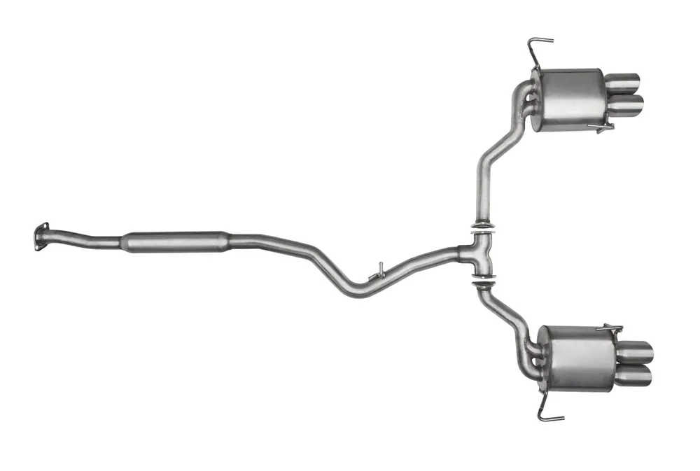 Crafted with smooth mandrel-bent piping positioned behind the catalytic converter, this system reduces exhaust restrictions for improved airflow. It features a free-flowing center pipe that splits into dual mufflers, each finished with engraved STI tips for a clean, aggressive look. This setup not only improves performance but also provides a distinctive exhaust note that Subaru fans appreciate.