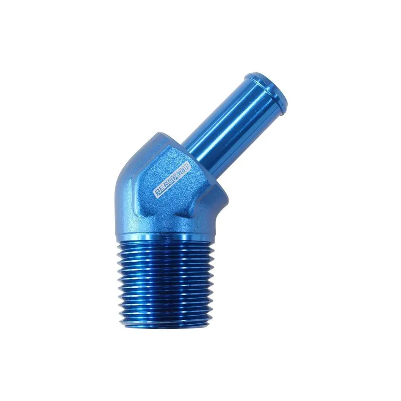 These handy NPT to straight hose barb fittings are designed to allow easy fuel line installation on electric fuel pumps and regulators when using rubber fuel line. They have a male NPT fitting on one end and a barbed fitting on the other end and they’re available in different sizes to fit your needs.These barb sizes are designed to work with Aeroflow 100 series and 450 series Braided hose. Available in various sizes with Blue, Black and Silver finishes.