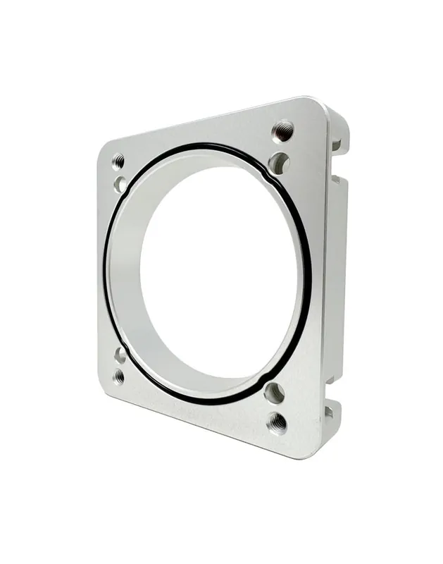 The Torque Solution Big Bore 76mm Throttle Body Adapter allows Subaru EJ engine owners with a standard bore intake manifold to upgrade to a Toyota 76mm big bore throttle body, increasing airflow by 25% over OEM. CNC-machined from 6061 billet aluminum and anodized for corrosion resistance, this adapter includes O-ring gaskets for a leak-free seal and all necessary hardware for installation.