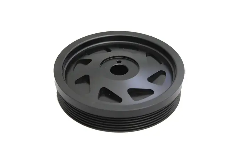 Torque Solution has designed this crank pulley not only to improve performance but to surpass the quality of the original pulley. A critical feature of the Torque Solution pulley is its increased mounting surface area between the pulley and the crankshaft. The increased surface area distributes the contact load over a larger area, eliminating the chances of the pulley spinning loose. Torque Solution constructed this crank pulley from high quality CNC machined billet aluminum to provide lightweight without sacrificing strength. The black anodized Red Finish seals the aluminum and preserves the appearance. Most important, this lightweight pulley improves throttle response and increases acceleration by putting more horsepower and torque to the wheels.