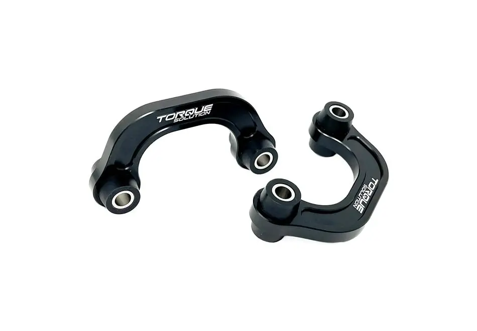 Crafted with durable 75A durometer urethane bushings and CNC-machined 6061-T6 billet aluminum, these endlinks balance performance and longevity. The black anodized finish with the Torque Solution logo adds a sleek, corrosion-resistant touch. Each set includes all necessary hardware for a straightforward installation, offering a reliable upgrade without the harshness often associated with spherical links.