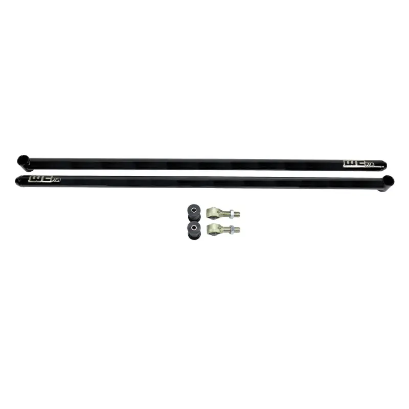 Traction bars are a necessary upgrade when increasing the horsepower on your truck to prevent the axle from twisting which can lead to broken u-joints, driveshafts, and even twisted axle housings. These Universal Fabricator Series 60″ Traction Bars from WCFab include the essentials, allowing you to customize the mounts for your specific application. Features High quality RockJock rebuild-able and grease-able Johnny Joint heim connections at the frame side connection for the bars. Heavy Duty Poly Urethane Bushing at the axle side connection for decreased noise and vibration (common complaint when solid heims are used on both ends). WCFab traction bars are all finished with their professional in house powder coat process in your color choice and come standard with a epoxy primer base coat before the final color to increase corrosion resistance by more than ten times compared to just your standard powder single coat application. Made in USA.